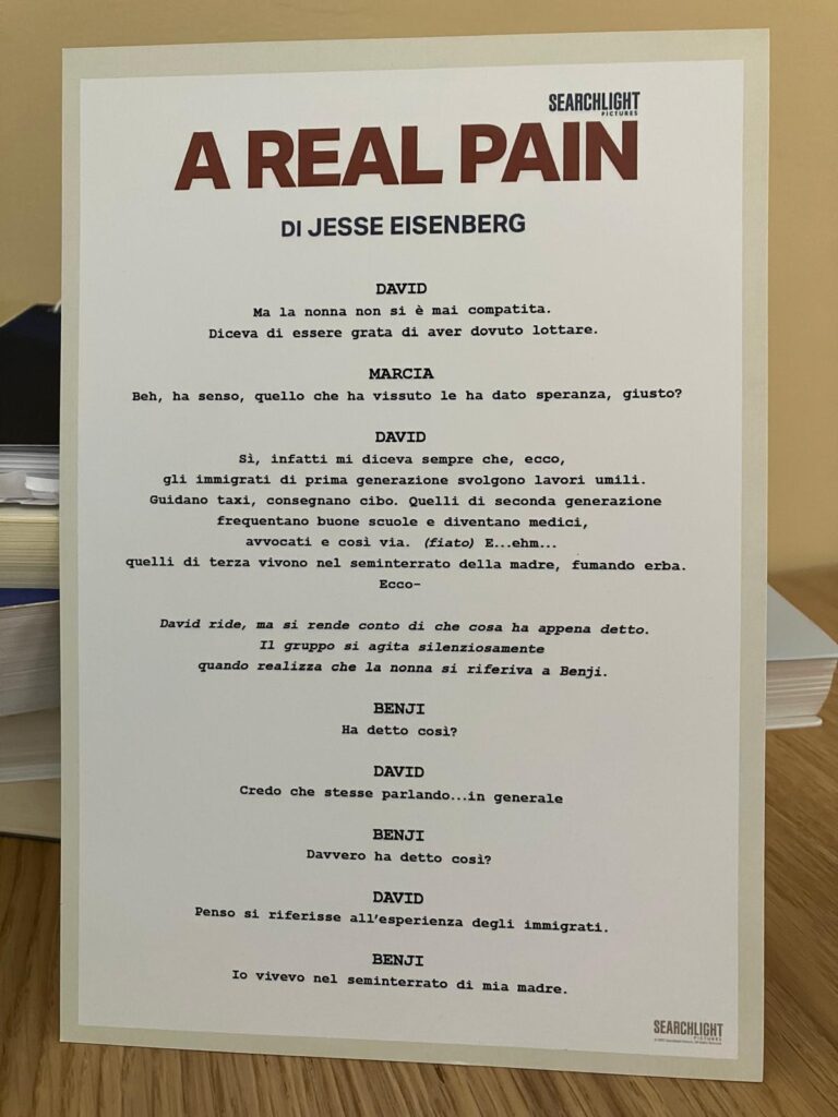 A Real Pain è la storia di un viaggio che intraprendono due cugini, David e Benji, a seguito della morte della loro nonna.